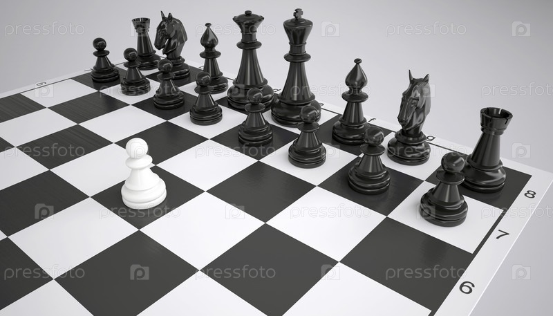 Белая пешка перед армией черных шахматных фигур