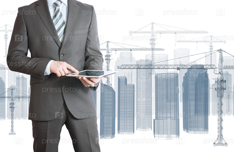 Бизнесмен на фоне строящихся домов