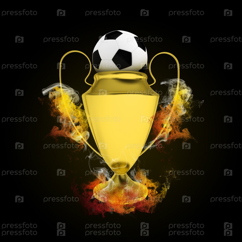 Кубок и мяч в цветном дыму