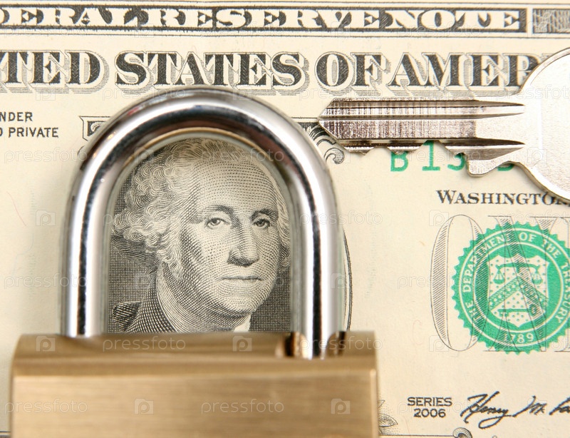 Доллары, ключ и замок