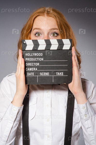 Молодая женщина с хлопушкой
