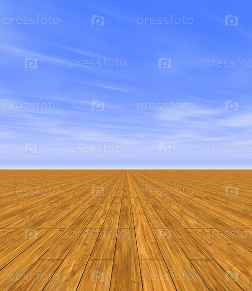 Голубое небо и деревянный пол