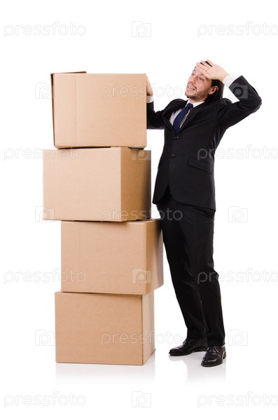 Забавный человек с коробками