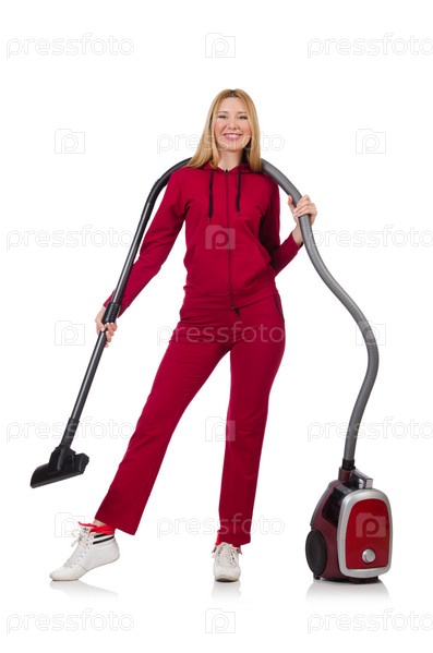 Молодая женщина с пылесосом