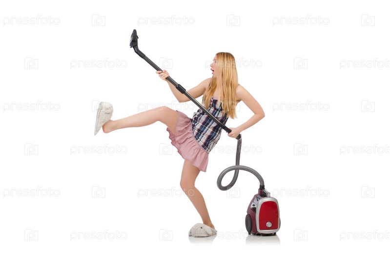 Молодая женщина с пылесосом