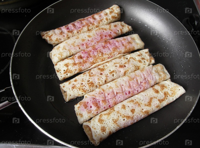 Блинчики с вишней на сковородке