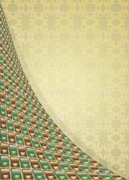 Узор из коричнево-зеленых клеток на бежевом фоне