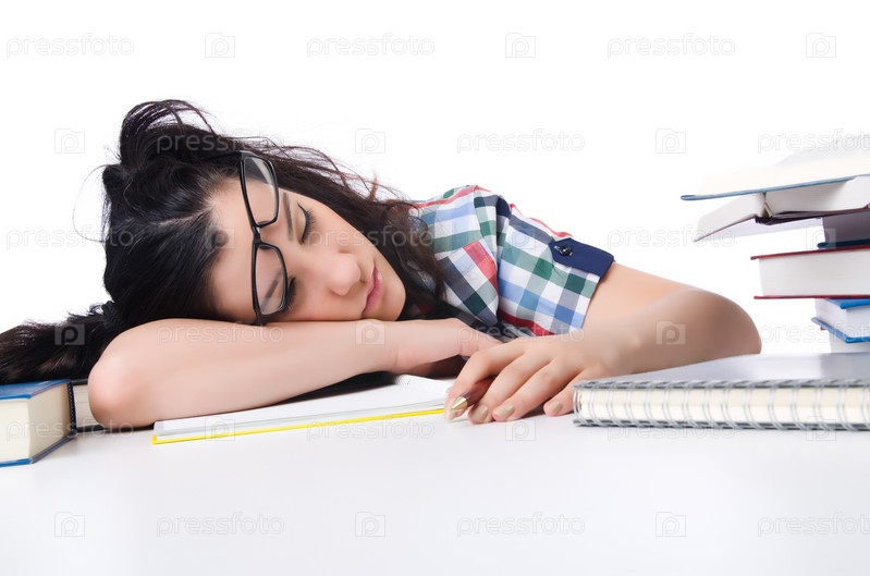 Усталый студент с учебниками