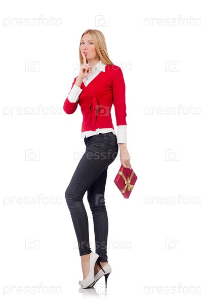 Молодая женщина с рождественским подарком