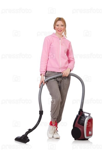 Молодая женщина с пылесосом