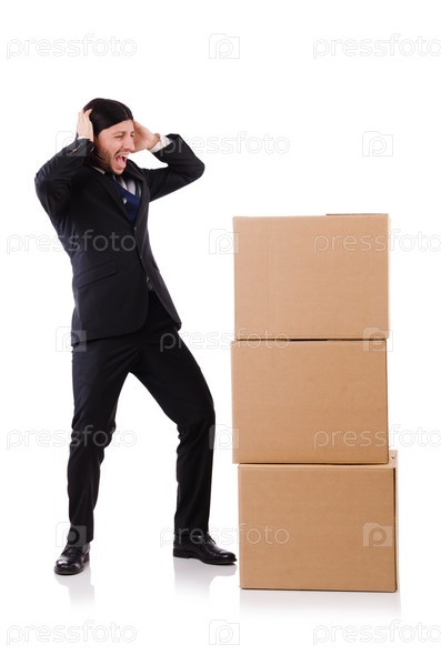 Забавный человек с коробками