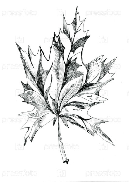 Декоративный рисунок листа со штриховкой на белом фоне
