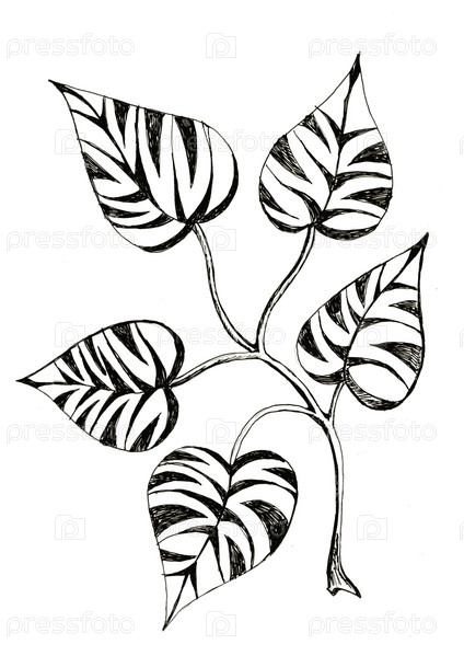 Декоративный рисунок листа со штриховкой на белом фоне