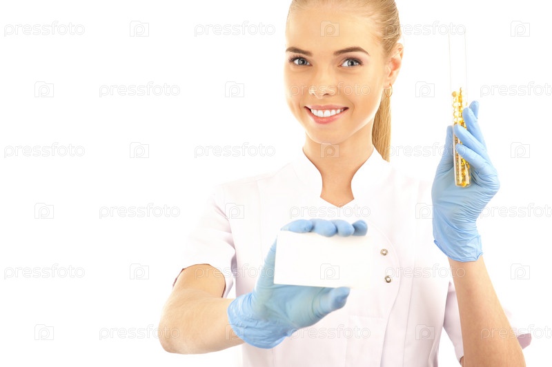 Симпатичная молодая врач с пустой карточкой