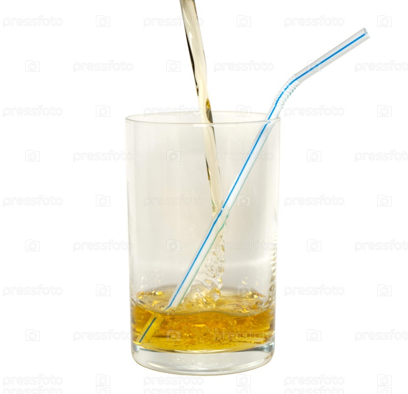 Стакан с соком и трубочкой на белом фоне