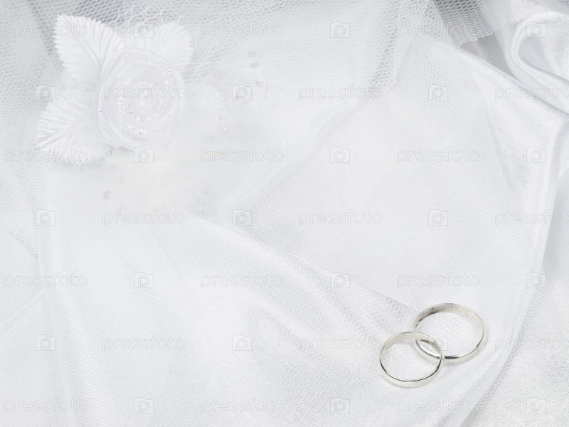 Обручальные кольца на фоне белого шелка с кружевами