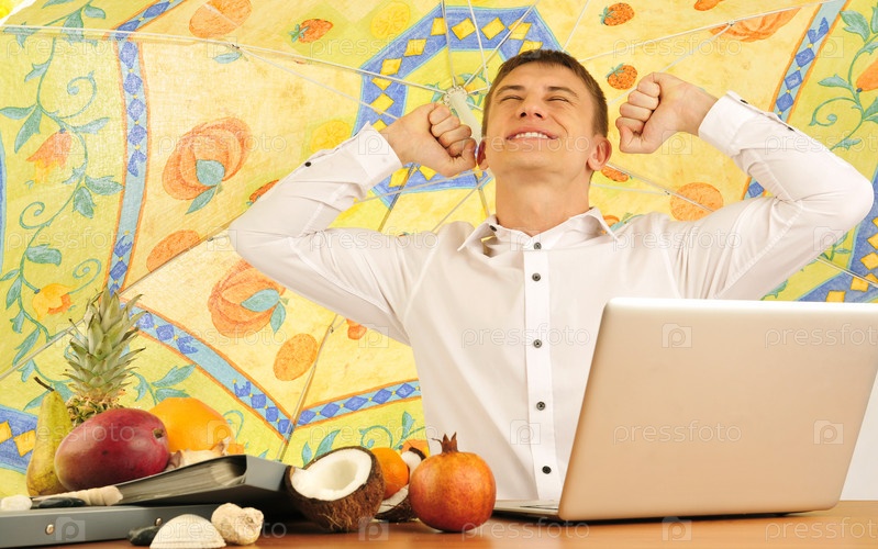 Молодой бизнесмен, работающий во время отпуска