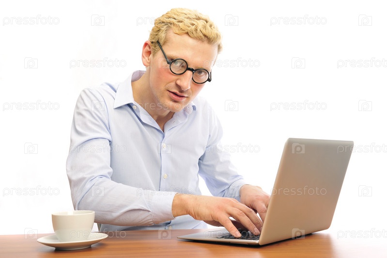 Молодой бизнесмен, работающий с ноутбуком