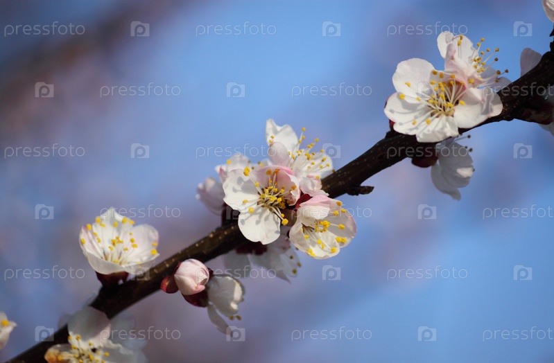 Ветка вишни в цвету в солнечный день