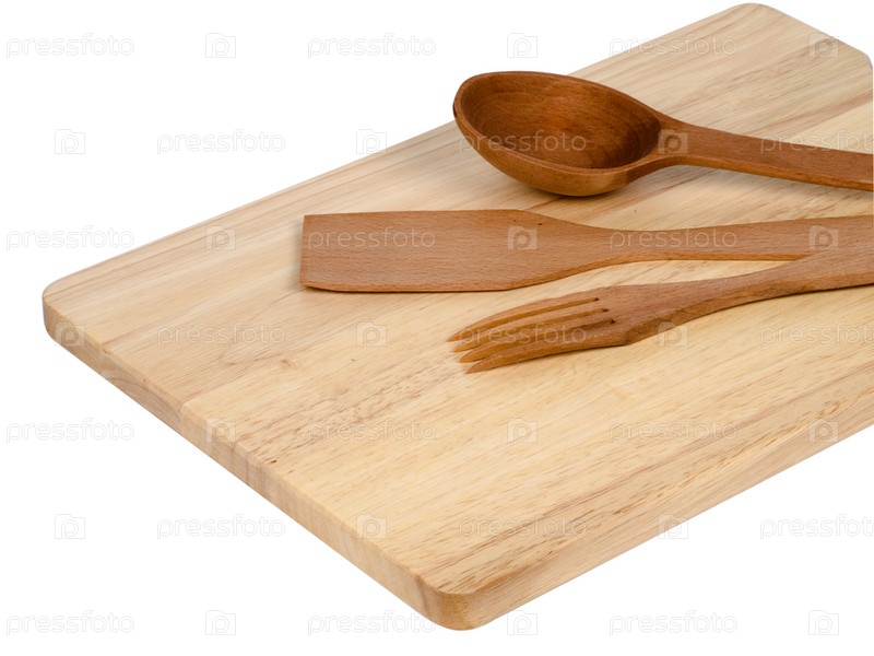 Деревянная кухонная утварь на белом фоне