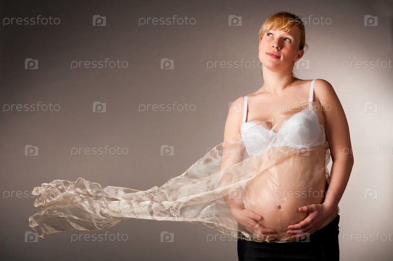 Беременная женщина на сером фоне