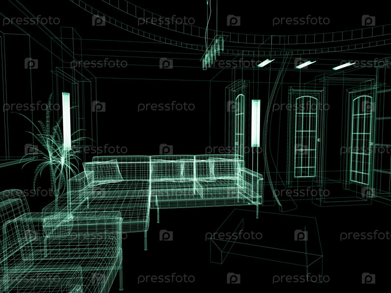 Современный домашний интерьер, 3D-рендеринг на черном фоне