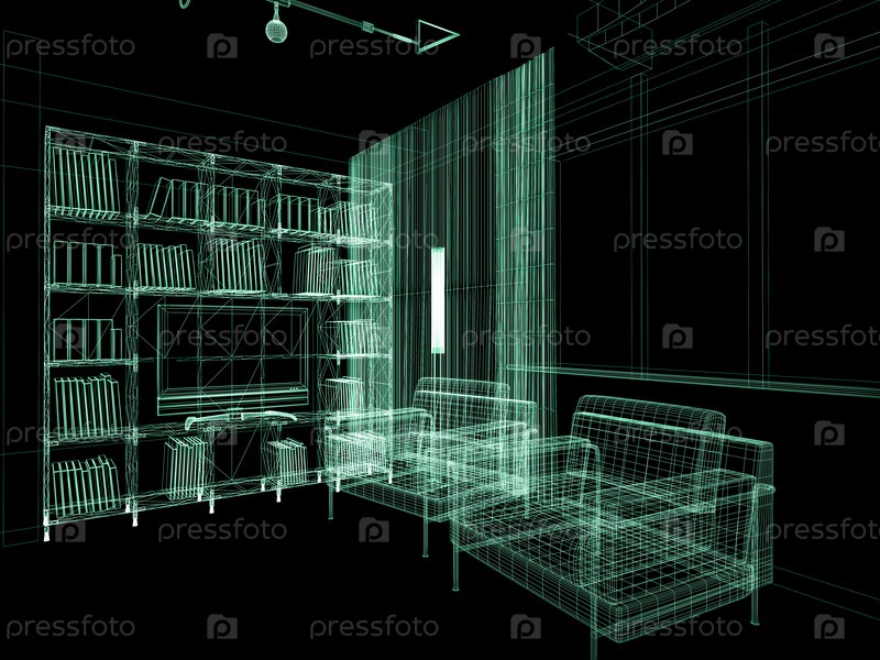 Современный домашний интерьер, 3D-рендеринг на черном фоне