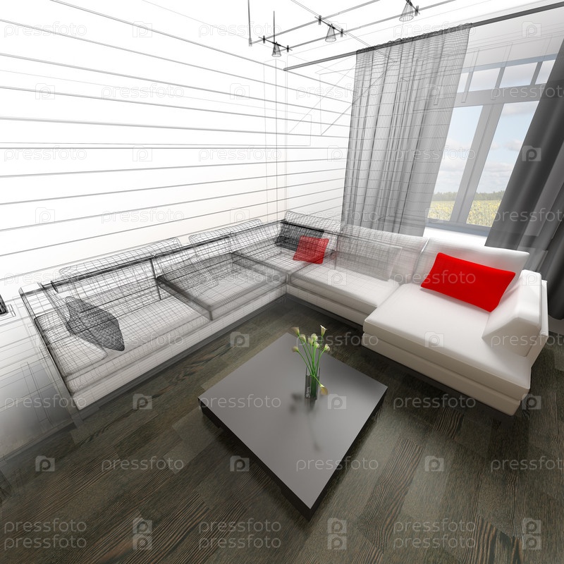 Современный интерьер гостиной, 3D-рендеринг