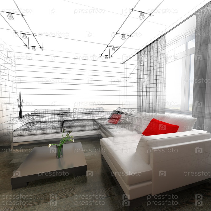 Современный интерьер гостиной, 3D-рендеринг