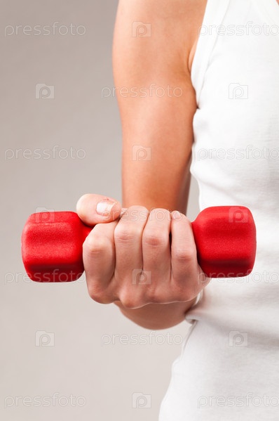 Гантеля в руке спортсменки