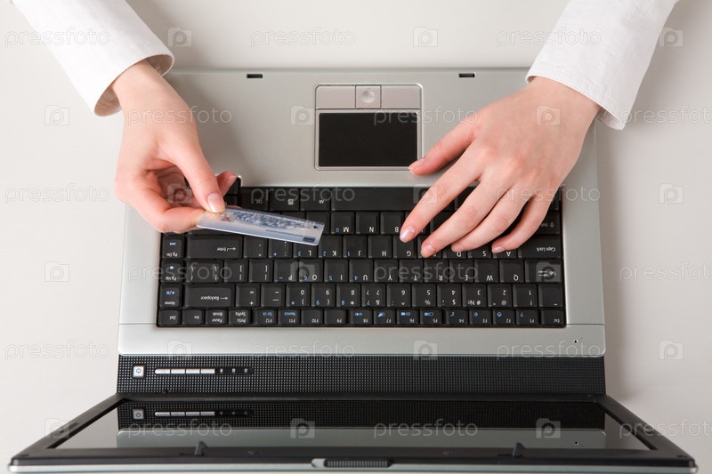 Вид выше на руку, держащую кредитную карту и покупающуюся