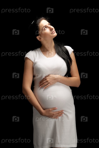 Очаровательная беременная женщина на черном фоне