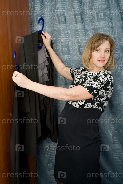 Беременная женщина выбирает платье