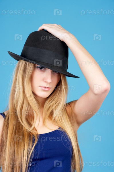 Молодая женщина на голубом фоне