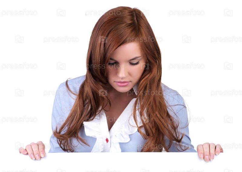 Молодая женщина смотрит вниз на пустой рекламный щит