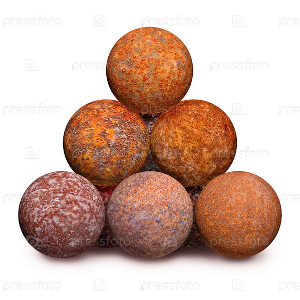 Несколько ржавых шаров на белом фоне