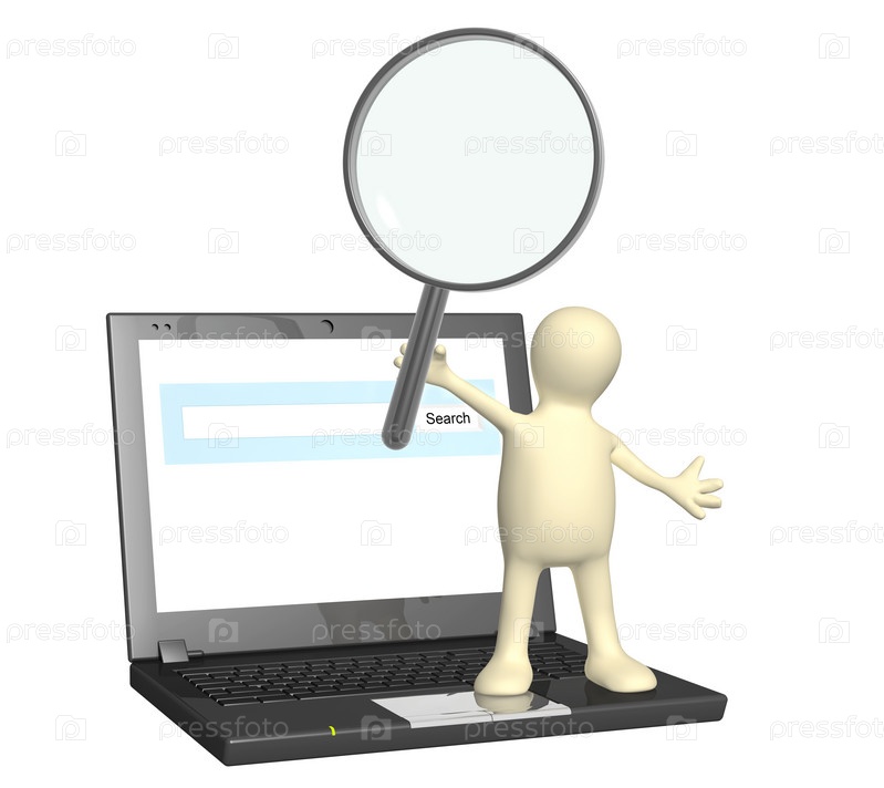 Кукла с лупой и ноутбук
