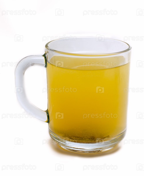 Зеленый чай в кружке на белом фоне