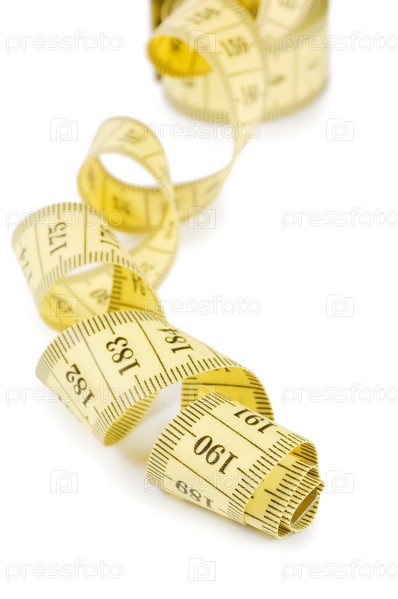 Желтая сантиметровая лента на белом фоне