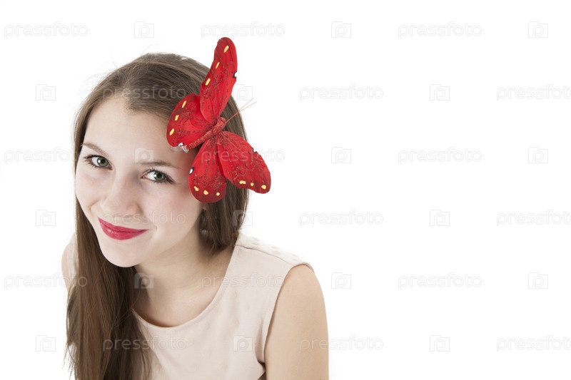 Портрет девушки с бабочкой на голове