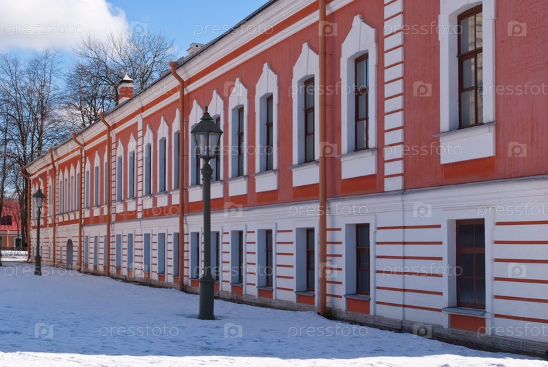 Фасад здания на территории Петропавловской крепости в Санкт-Петербурге