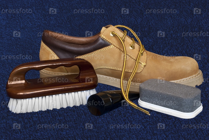 Ботинок, крем и щетка для обуви
