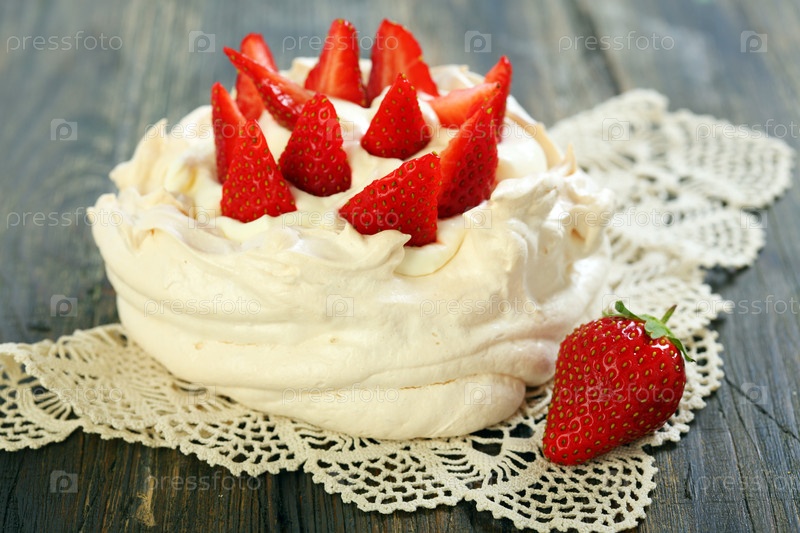 Безе с клубникой и взбитыми сливками