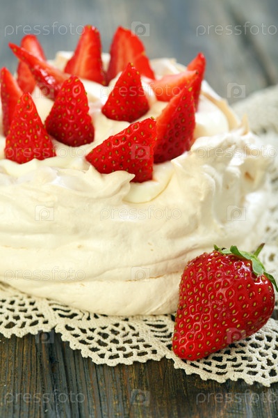 Безе с клубникой и взбитыми сливками