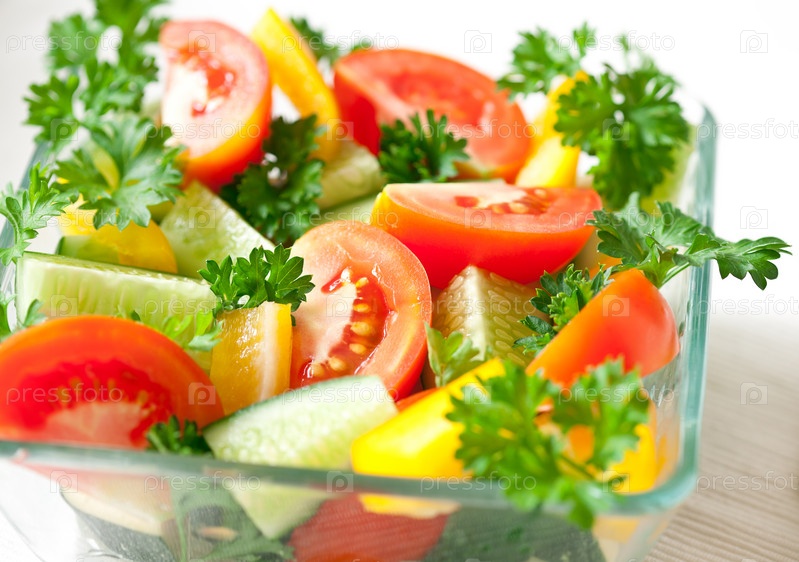 Свежие нарезанные овощи в тарелке