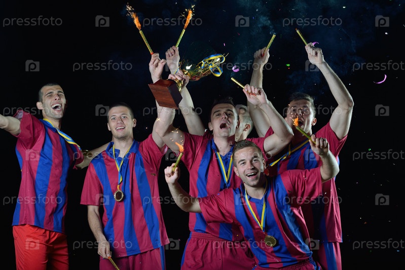 Футболисты празднуют победу