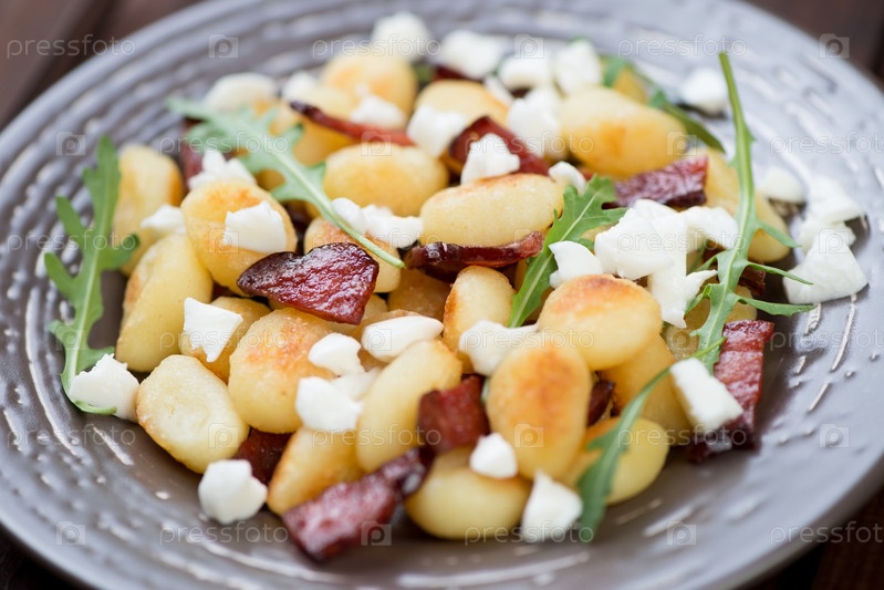 Жареные ньокки с ветчиной и сыром
