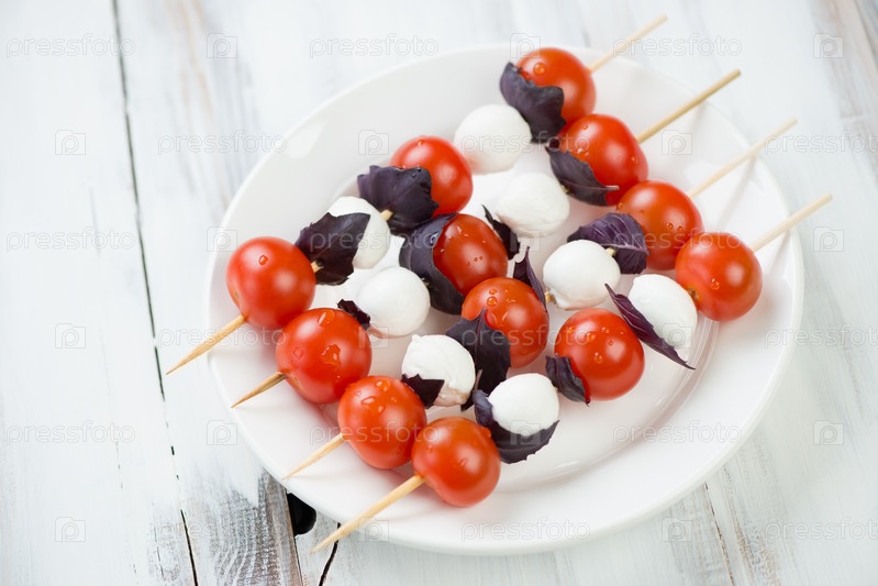 Моцарелла, помидоры и базилик на шпажках