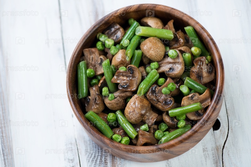 Жареные шампиньоны с овощами