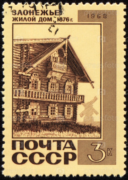 Почтовая марка СССР с изображением жилого дома в Заонежье
